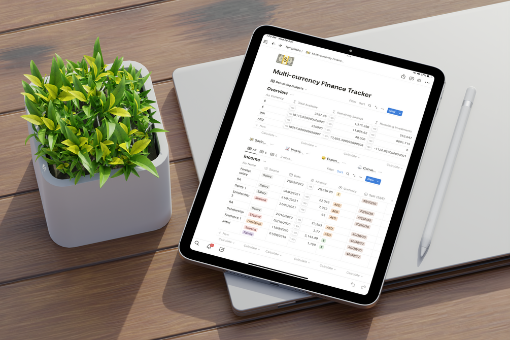The Multi-currency Finance Tracker is a template designed to help users keep track of their finances in multiple currencies.